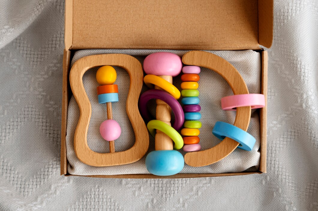 Lovevery, Manhattan Toy, and Lamaze are brands that produce beautifully crafted toys that concentrate on sensory discovery, motor skills, and visual development.