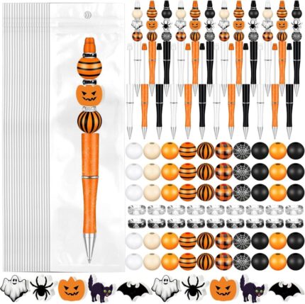 Ultimate Halloween DIY Bead Pen Kit – 197 Pcs with 24 Assorted Bead Pens, 101 Festive Beads, and 48 Spacer Beads for Creative Fun!