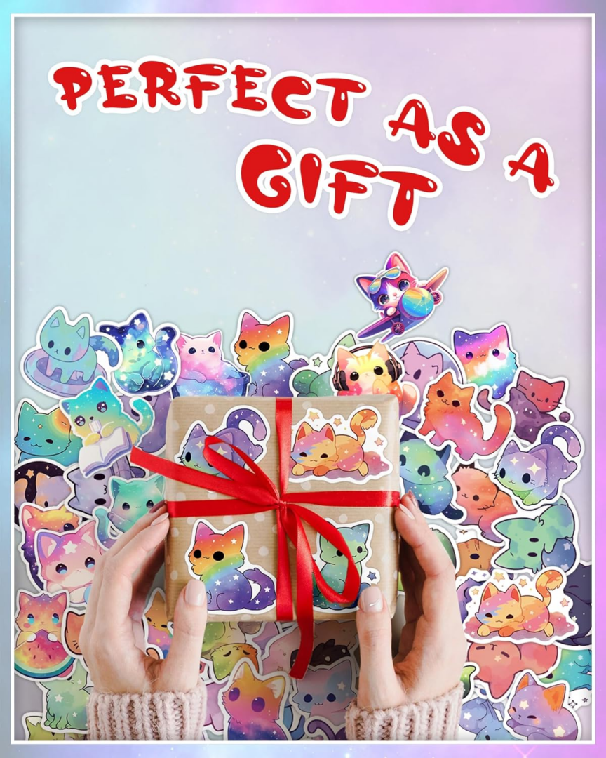 50 Adorable Cartoon Rainbow Cat Stickers – Aesthetic Vinyl for Laptops, Water Bottles, Suitcases & More!
