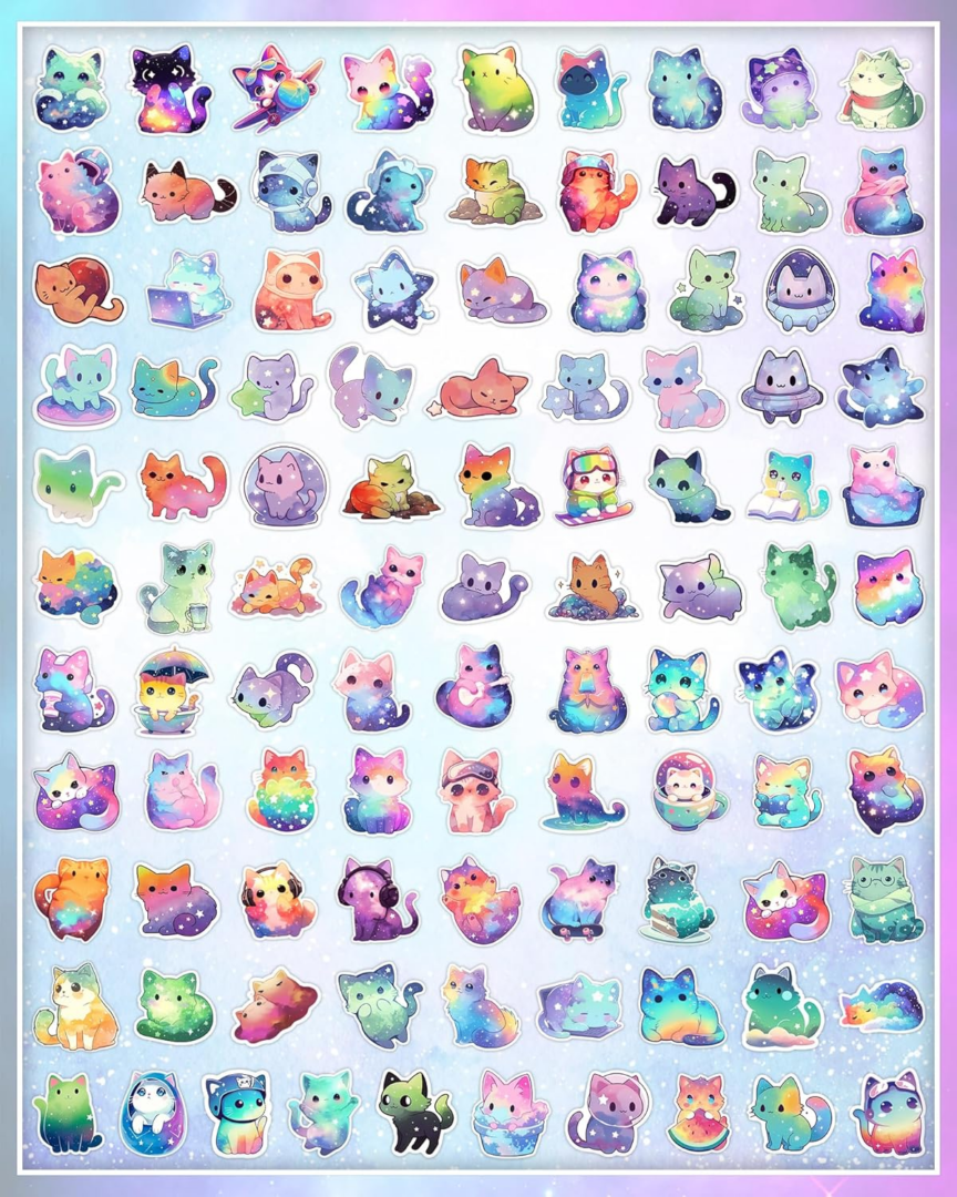 100PCS Kawaii Cat Stickers – Waterproof Vinyl for Kids & Teens, Perfect for Water Bottles, Laptops, Skateboards & More!