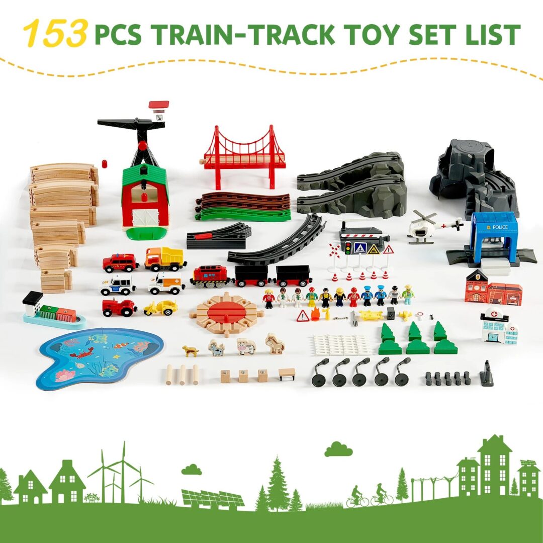 153-Piece Wooden Train Set for Children
