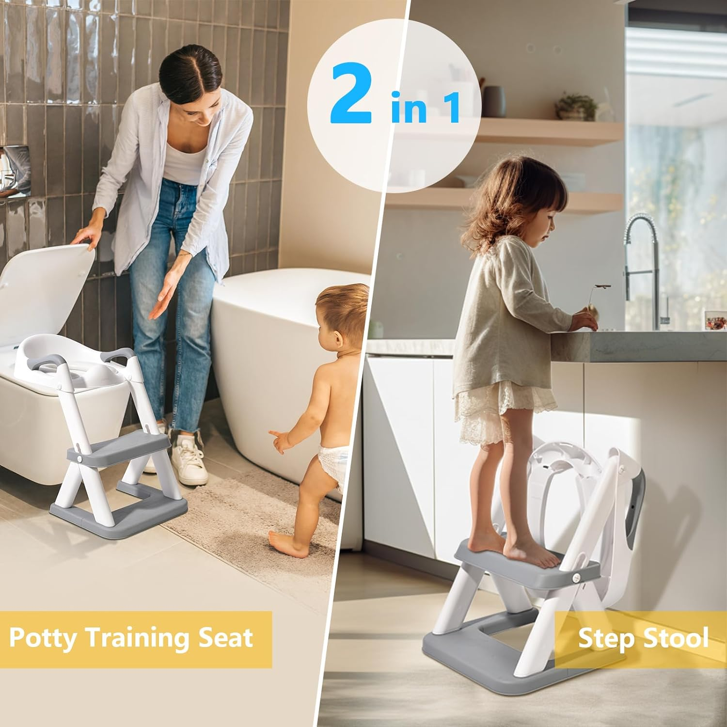 Introducing the Ultimate Toilet Potty Training Seat with Step Stool Ladder! This remarkable 2-in-1 solution is designed to make potty training a breeze for toddlers aged 1-3.