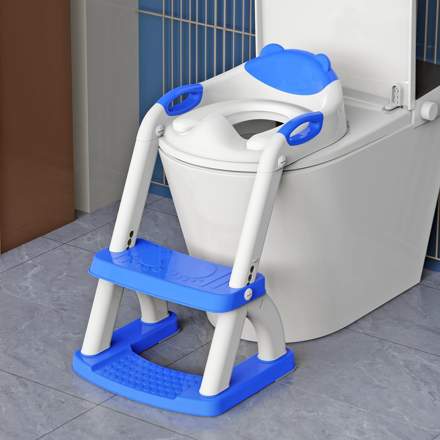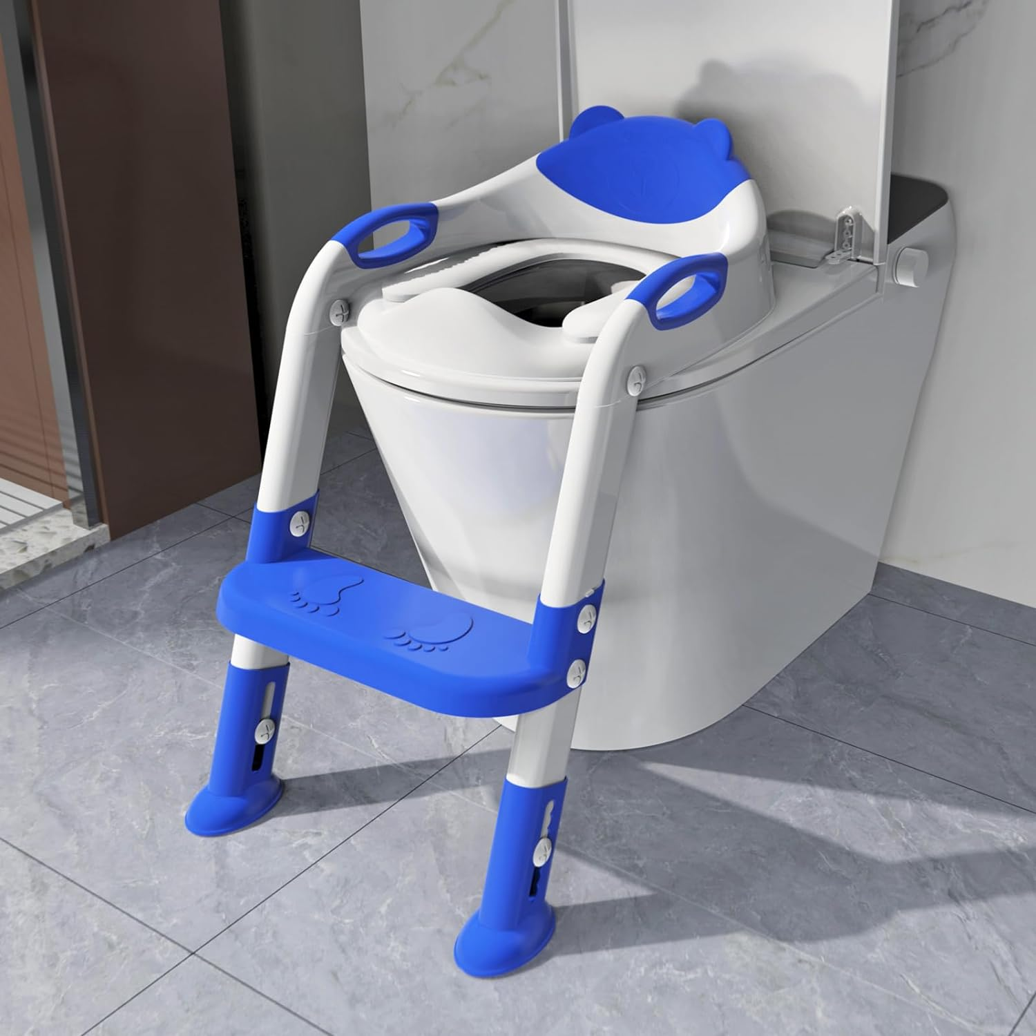 “Kids Potty Training Chair with Step Stool – Height Adjustable Toilet Seat for Boys and Girls, Blue-White”