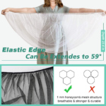 With a stretchable length of up to 60 inches, this net fits most standard jogger strollers, carriers, car seats, bassinets, and cradles. The natural unfold size is 27 inches by 29 inches.
