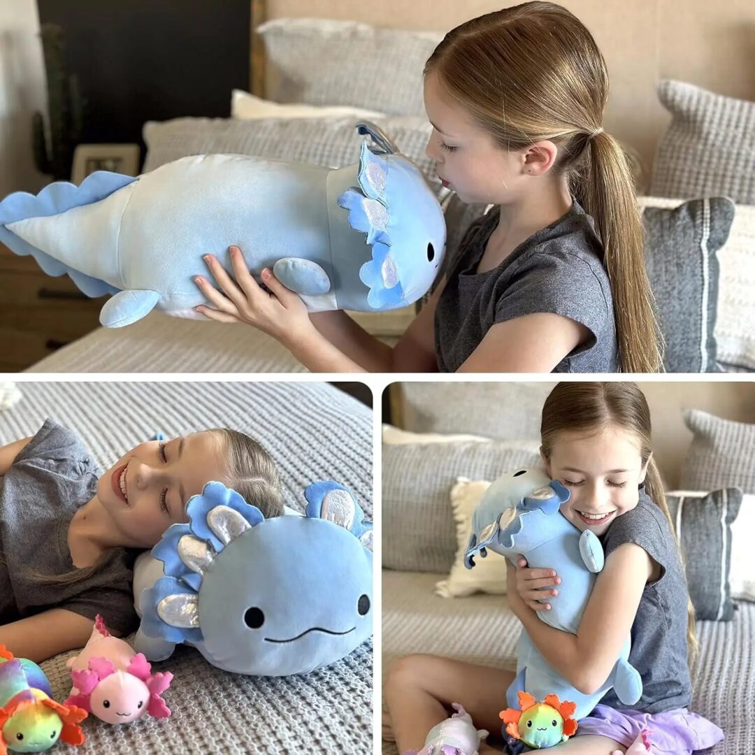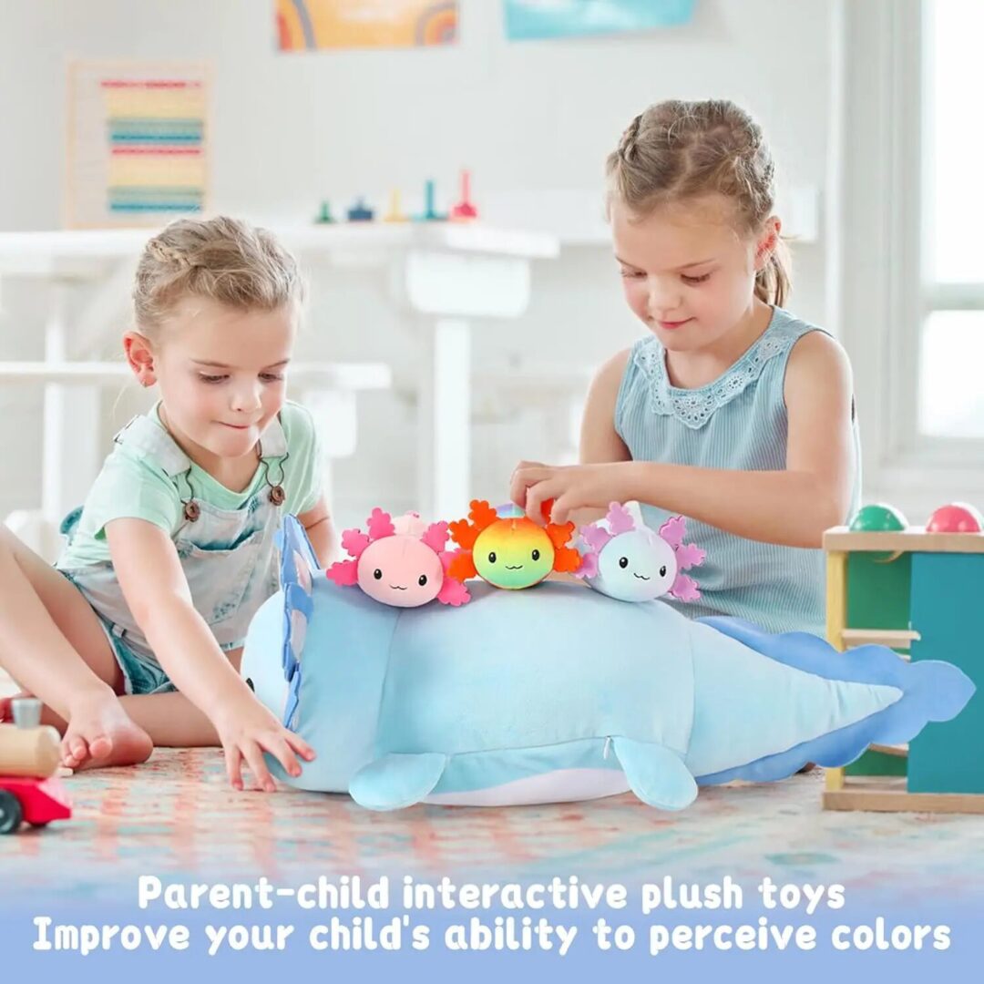 The MaoGoLan 23.5″ Giant Axolotl Plush with 3 Baby Axolotls is an enchanting addition to any home, perfect for children and adults alike. This plush toy not only serves as a delightful companion for cuddling but also doubles as a charming decorative throw pillow, adding a whimsical touch to any living space or bedroom. Crafted from ultra-soft, skin-friendly materials, this plush toy provides a comforting experience that makes it ideal for relaxation, playtime, or simply brightening up your décor.