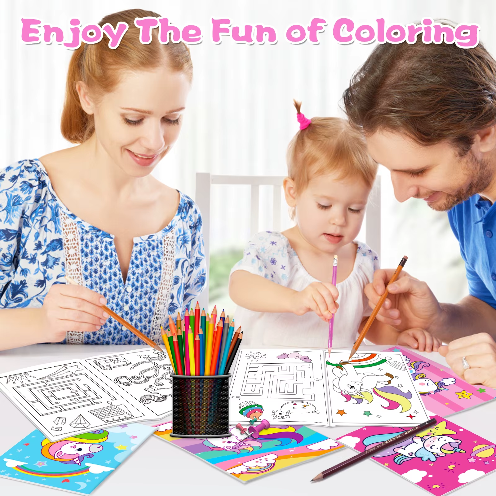 The rich content of these coloring books is designed to stimulate children’s imagination and creativity. Featuring whimsical patterns such as unicorns, rainbows, castles, and more, these books not only encourage artistic expression but also include maze games that promote cognitive development. Made from high-quality, thick paper, these coloring books are durable and suitable for use with colored pencils, gel pens, or crayons. Their compact size makes them easy to carry, allowing kids to enjoy coloring at home, school, or during outings with friends.