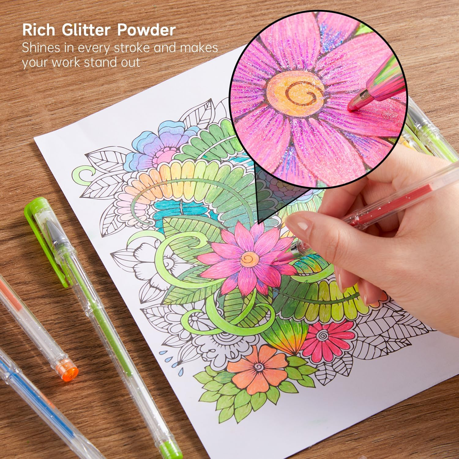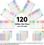 - 240 GLITTER PACK: The Shuttle Art 240 Pack Glitter Gel Pens set features an impressive collection of 120 individual glitter and neon glitter colors, accompanied by 120 matched refills. This extensive array of colors is designed to enhance your creative projects, making it ideal for adult coloring books, scrapbooking, sketching, doodling, drawing, and writing. Each pen boasts a unique hue, allowing you to explore endless artistic possibilities and bring your imagination to life.