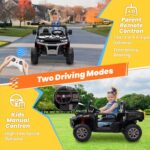 • 🎮 Dual Driving Modes – Offers both parental remote control and kid’s manual operation, enhancing autonomy while ensuring safety with a reinforced seatbelt and lockable door.