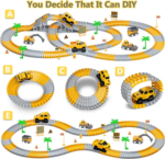 The race car track Sets Easy to Assemble and Disassemble, can be twisted, turned, and adjusted to form different shapes and accommodate any scenario and space. It brings kids an excellent experience, has great moments & indoor fun. Gifts Toys for Boys Kids Age 3 4 5 6 7 8 years old.