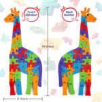 The Lovestown Giraffe Wooden Puzzle is a 26-piece puzzle designed to help preschool kids learn the alphabet and numbers. One side of the puzzle features English letters from A to Z, while the other side features numbers 1 to 26. Each wooden block has been painted and is coated with water-based paint, making them safe for children to use. This puzzle is not only a fun way for kids to learn letters and numbers, but it also helps improve their thinking ability, assembly ability, hand-eye coordination, patience, and memory.