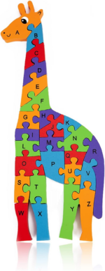 “26-Piece Giraffe Wooden Puzzle: Alphabet and Number Building Blocks for Preschool Kids”