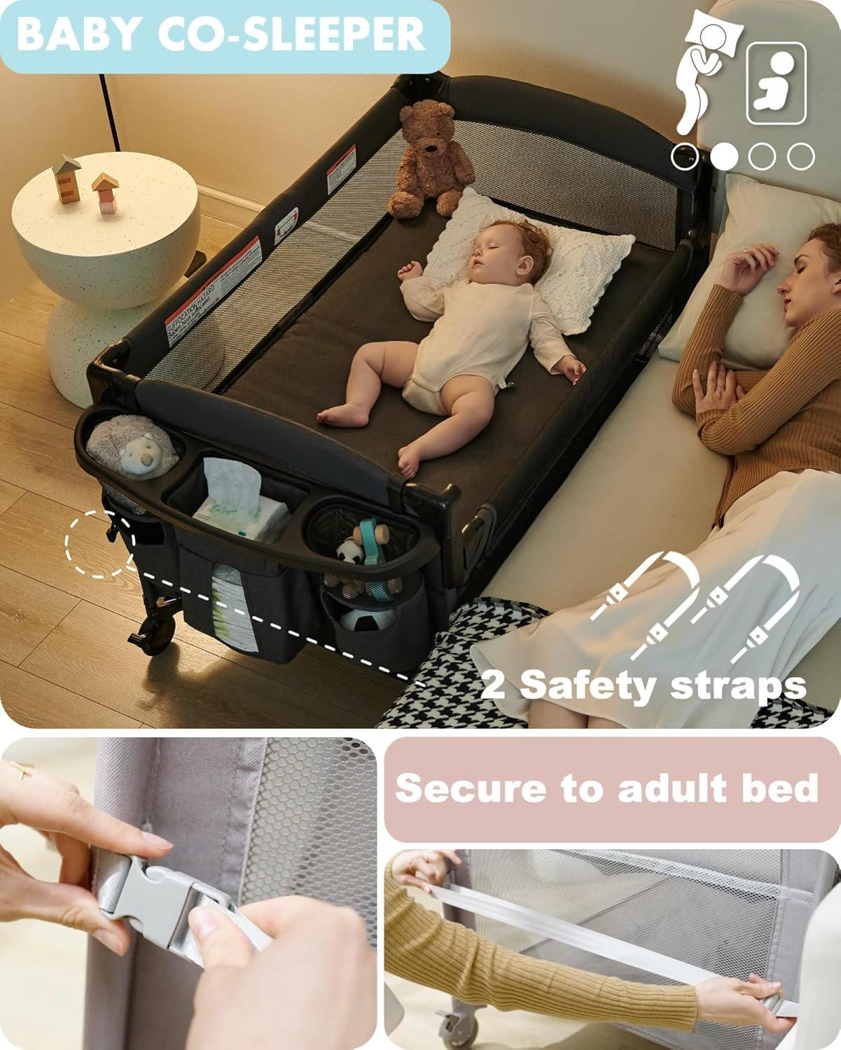 AirClub baby bassinets bedside sleeper absolutely pays attention to safety, quality, and safety level, and has passed the multiple certifications of CPSC, SGS, and BSCI to escort the health and safety of the baby.