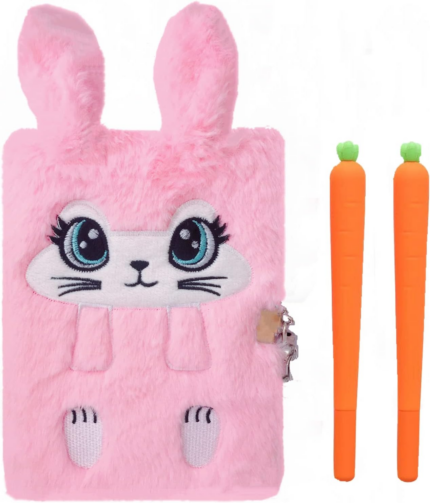 Cute Bunny Diary with Lock for Girls – Fluffy Rabbit Journal Set with 2 Carrot Pens for Easter, Birthdays, and New Year Ages 8-12