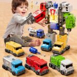 Home Toys Pretend Play Vehicle’s & Trains 5-in-1 Transformable Robot Construction Vehicle Set for Boys – DIY Buildable Toy Trucks and Robots – Ideal Gifts for Children