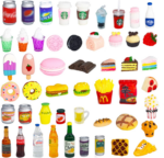 50 Pcs Miniature Food Drink Bottles Soda Pop Cans Pretend Play Kitchen Game Party Accessories Toys Hamburg Cake Ice Cream for 1/12 Doll House (25Food+25Drink)