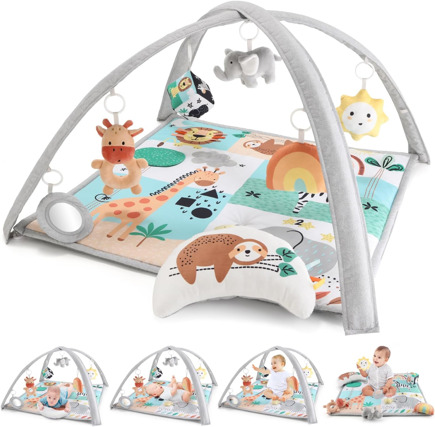 7 in 1 Baby Play Gym for Boys or Girls, Activity Center, Tummy Time Toys, Play Mat for Babies 0-6 Months, Newborn Essentials, Playmate for Baby, Safari Animals
