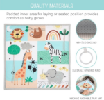 • Machine Washable – Made of soft, breathable polyester fabric with an anti-slip backing. Both the padded mat and pillow are machine washable, while the 6 hanging toys can be wiped clean with a damp cloth.