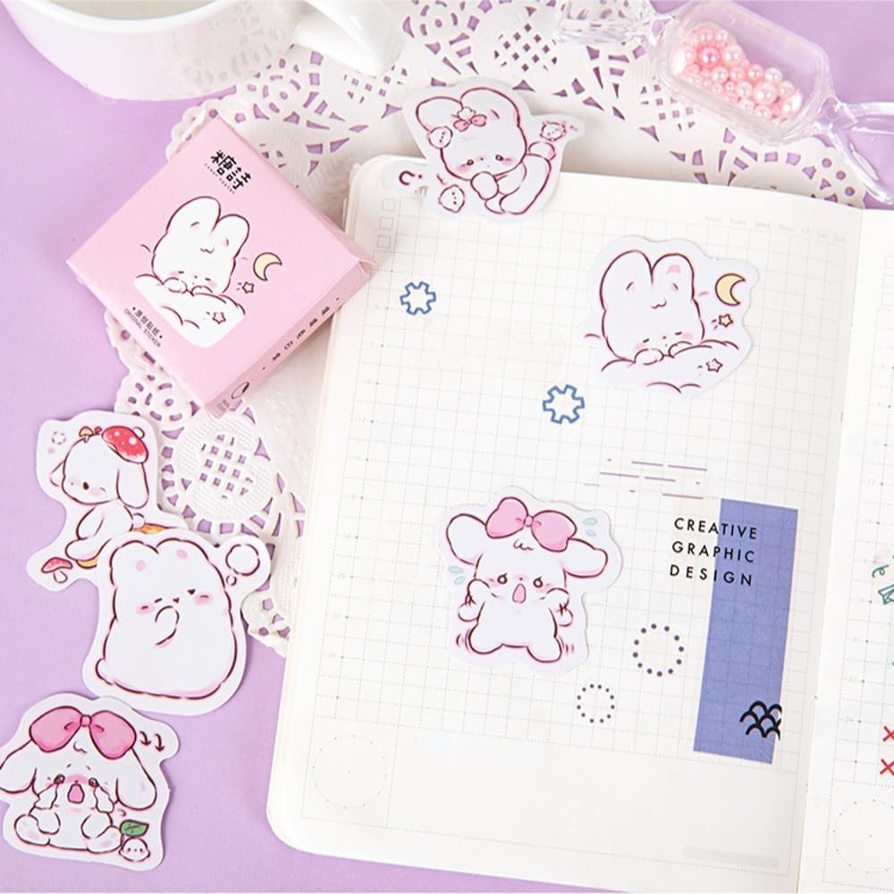 Adorable 45Pcs Bunny Rabbit Stickers for Scrapbooking, Journaling, and DIY Crafts – Perfect for Planners, Laptops, and Phone Cases!