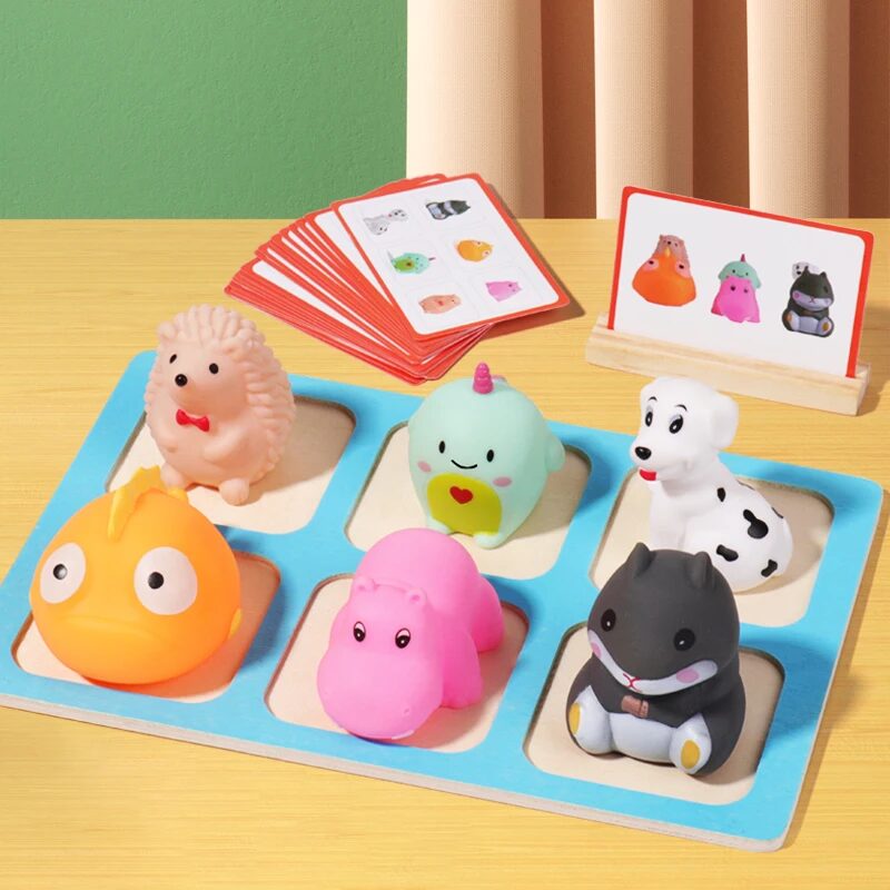 This interactive game encourages children to match and sort various animal figures according to the provided cards. It fosters educational play by enhancing cognitive skills through hands-on activities.
