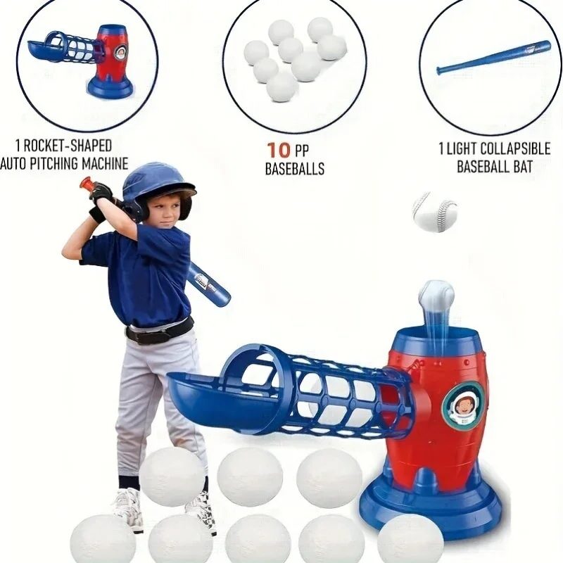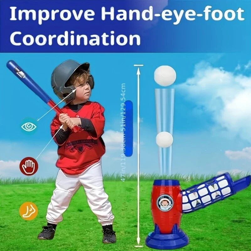 Home Toys Shop By Age Pre-school Automatic Pitching Machine for Children with T-Ball Set, Featuring a Plastic Bat and 10 Balls, Ideal for Young Players
