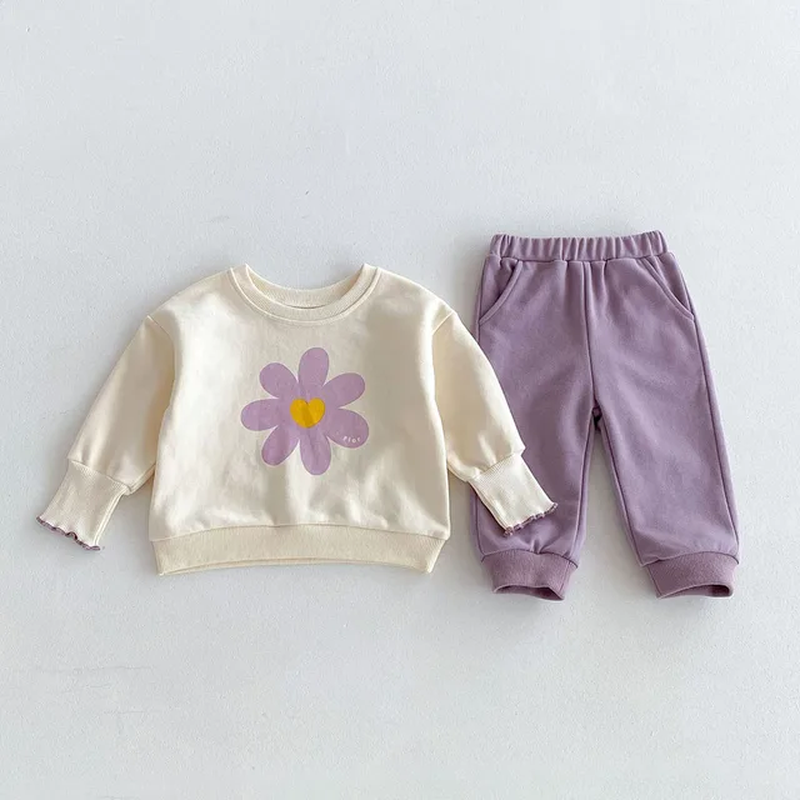 This product is perfect for children aged 1-3 years. It is made from high-quality cotton material, ensuring durability and comfort. The pullover closure type makes it easy to dress and undress your child. The O-Neck collar adds a fashionable element to the outfit. The set comes in a beautiful beige-purple color, perfect for the autumn season.