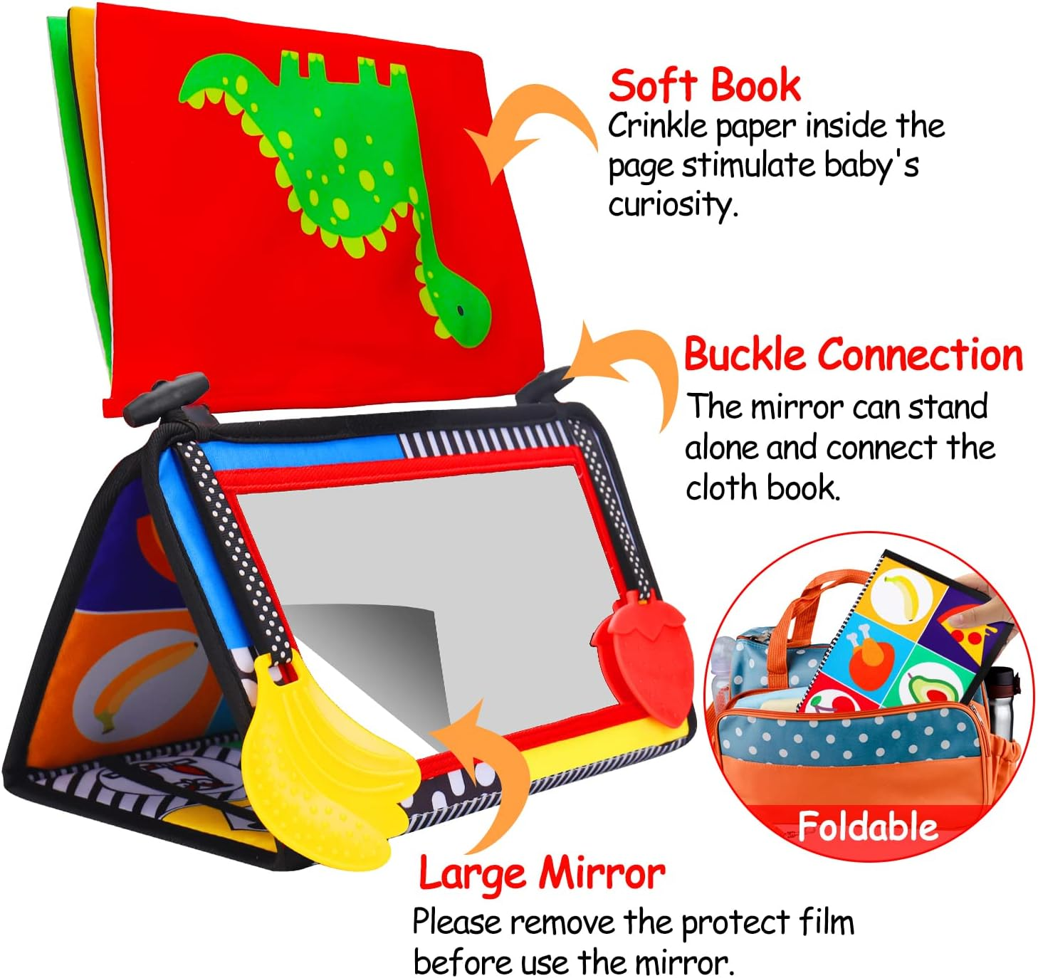“Black and White High Contrast Baby Mirror Set for Brain Development – Includes Crinkle Cloth Book and Teether – Perfect for Tummy Time and Crawling – Ideal for Boys and Girls 0-12 Months”