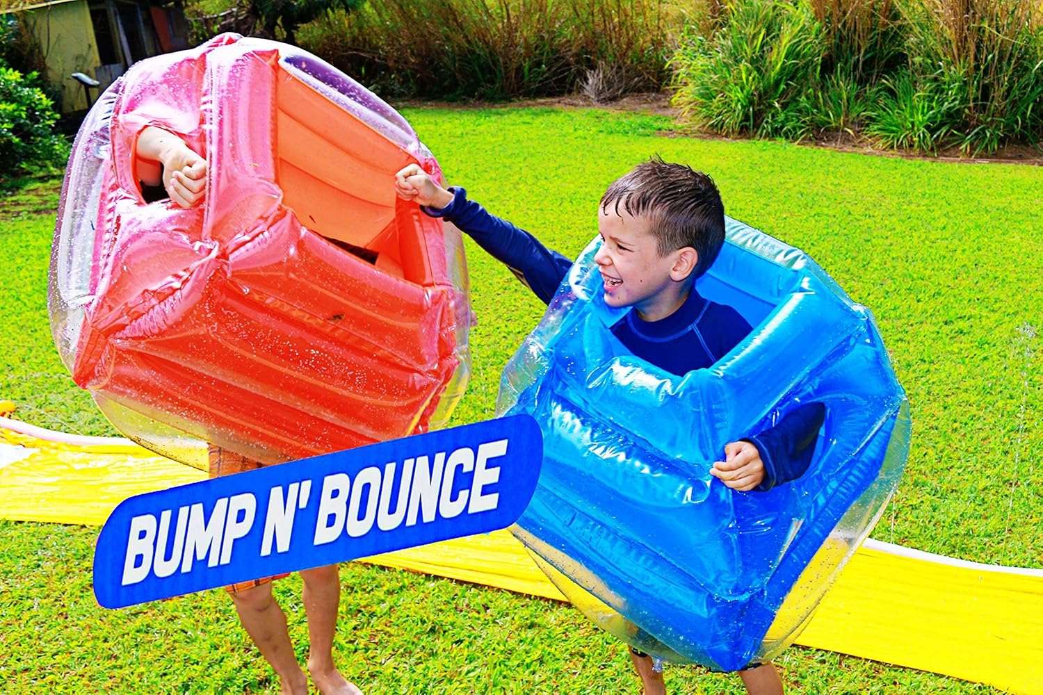 The BANZAI Bump N’ Bounce Body Bumpers provide an exhilarating and safe way for children aged 4 and up to engage in active play. Designed for belly-to-belly bumping fun, these inflatable body bumpers are perfect for backyard gatherings, playdates, or family events. Simply slip into the bumper suit and challenge a friend to a friendly competition, ensuring hours of laughter and excitement. The inflatable design allows for easy storage and transport, making it an ideal addition to any outdoor activity.