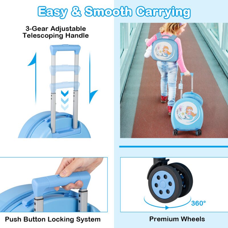 Durable and Functional Design: Crafted from high-quality, waterproof ABS and PC materials, the hardshell suitcase is built to withstand the rigors of travel while keeping contents secure. The accompanying backpack, made from abrasion-resistant 600D oxford fabric, features multiple compartments for organized storage of toys, clothes, snacks, and more. The telescoping handle adjusts to two heights, ensuring comfort for children of varying sizes. With its vibrant designs—ranging from whimsical mermaids to charming penguins and dreamy unicorns—this luggage set not only serves a practical purpose but also adds a touch of fun to any travel experience.