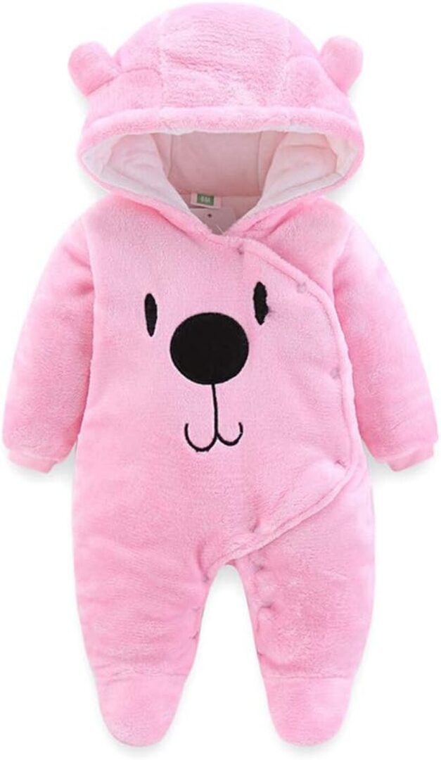 The ALLAIBB Baby Winter Snowsuit is designed with your infant's comfort and warmth in mind. This adorable hooded fleece jumpsuit is perfect for both boys and girls, making it a versatile addition to your baby's winter wardrobe. Crafted from high-quality fabrics, this snowsuit ensures that your little one stays cozy during chilly outings, whether it's a family walk in the park or a fun day playing in the snow. The thoughtful design features a cute bear and cartoon pattern that adds a playful touch, making it ideal for special occasions such as birthdays, baby showers, or photo shoots.