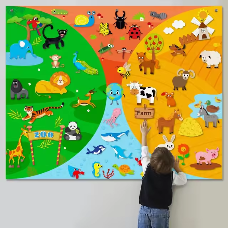 The Daily Calendar Felt Story Board Set for Toddlers: Farm and Transportation Theme is a fun and interactive learning tool for preschoolers. This set includes a large felt board background and various cards that allow children to update the year, month, day, weather, season, and mood according to their daily schedule. The set also includes a bear figure that can be dressed differently in different seasons, encouraging children’s hands-on ability and imagination. It’s a great way for kids to learn about time, weather, and seasons while having fun.