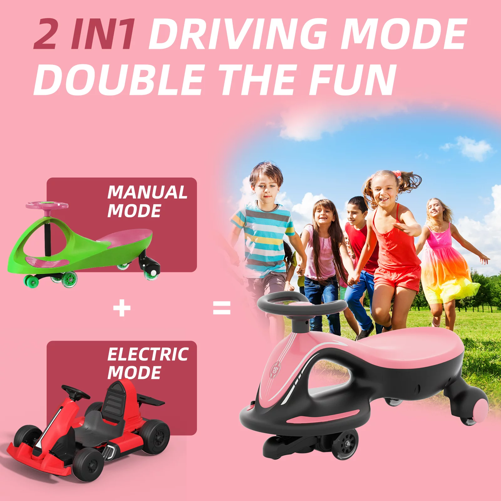 • Dual Fun Modes – Experience the thrill in two exciting modes with our innovative ride-on toy! Powered by a rechargeable battery and a convenient foot pedal, children can effortlessly activate the electric wiggle car with a simple press. The electric mode comes alive with entertaining music, adding an extra layer of joy to the ride. If the battery runs low or kids crave a different adventure, they can release the pedal and enjoy a manual swing car experience with ease.