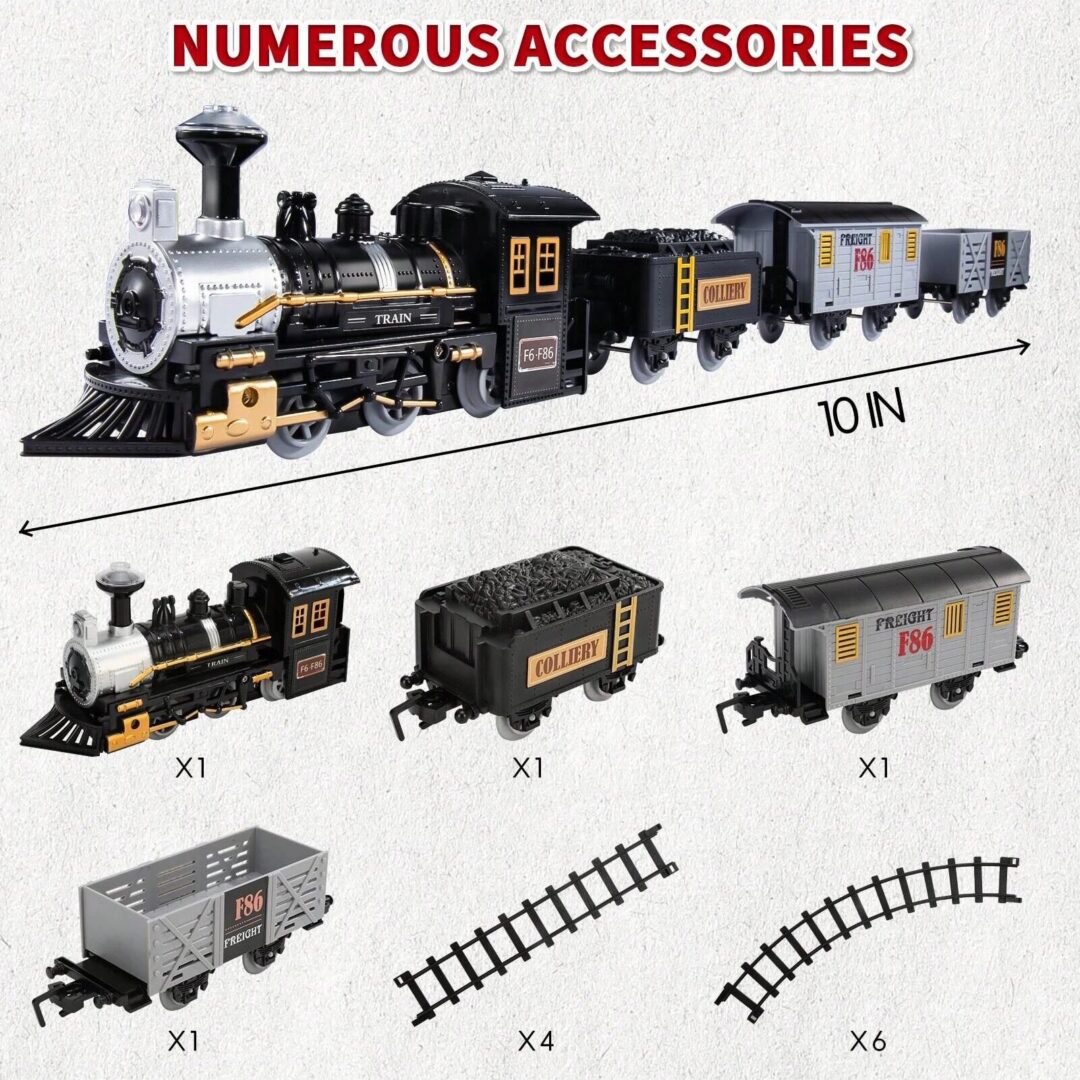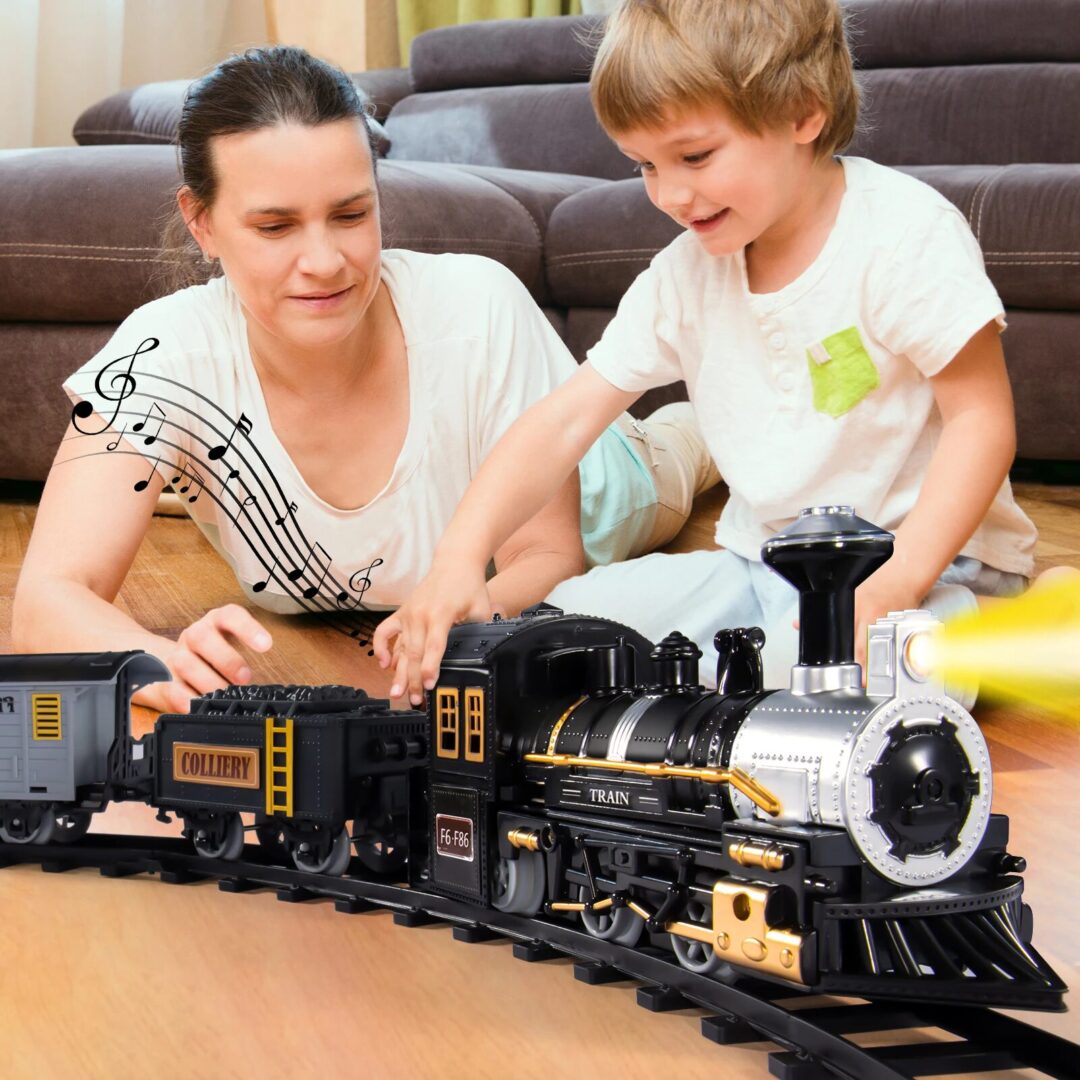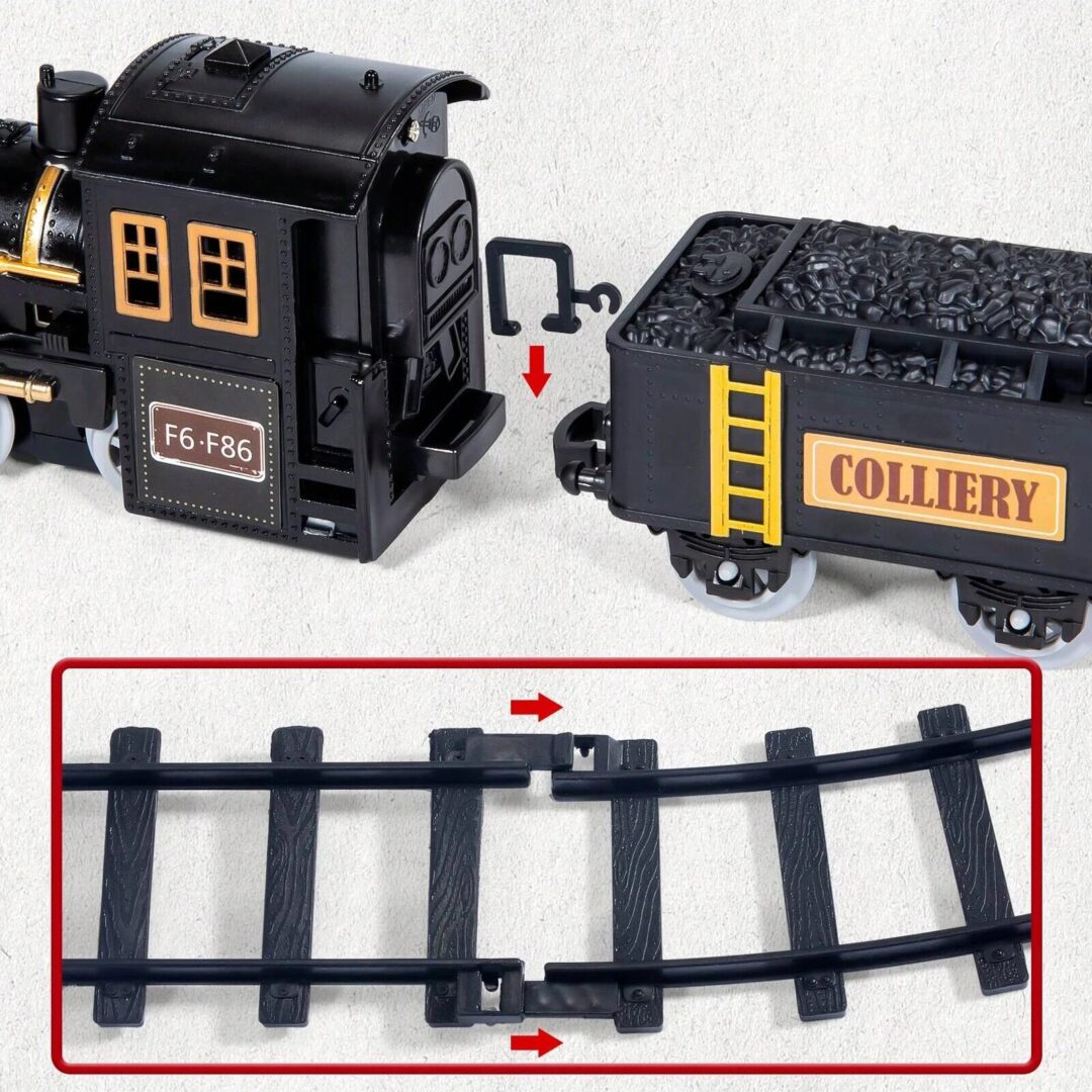 Home Toys Pretend Play Vehicle’s & Trains Electric Simulation Black Train Model with Track, Lights, and Music – Classic Railway Toy for Children, Ideal Birthday Gift