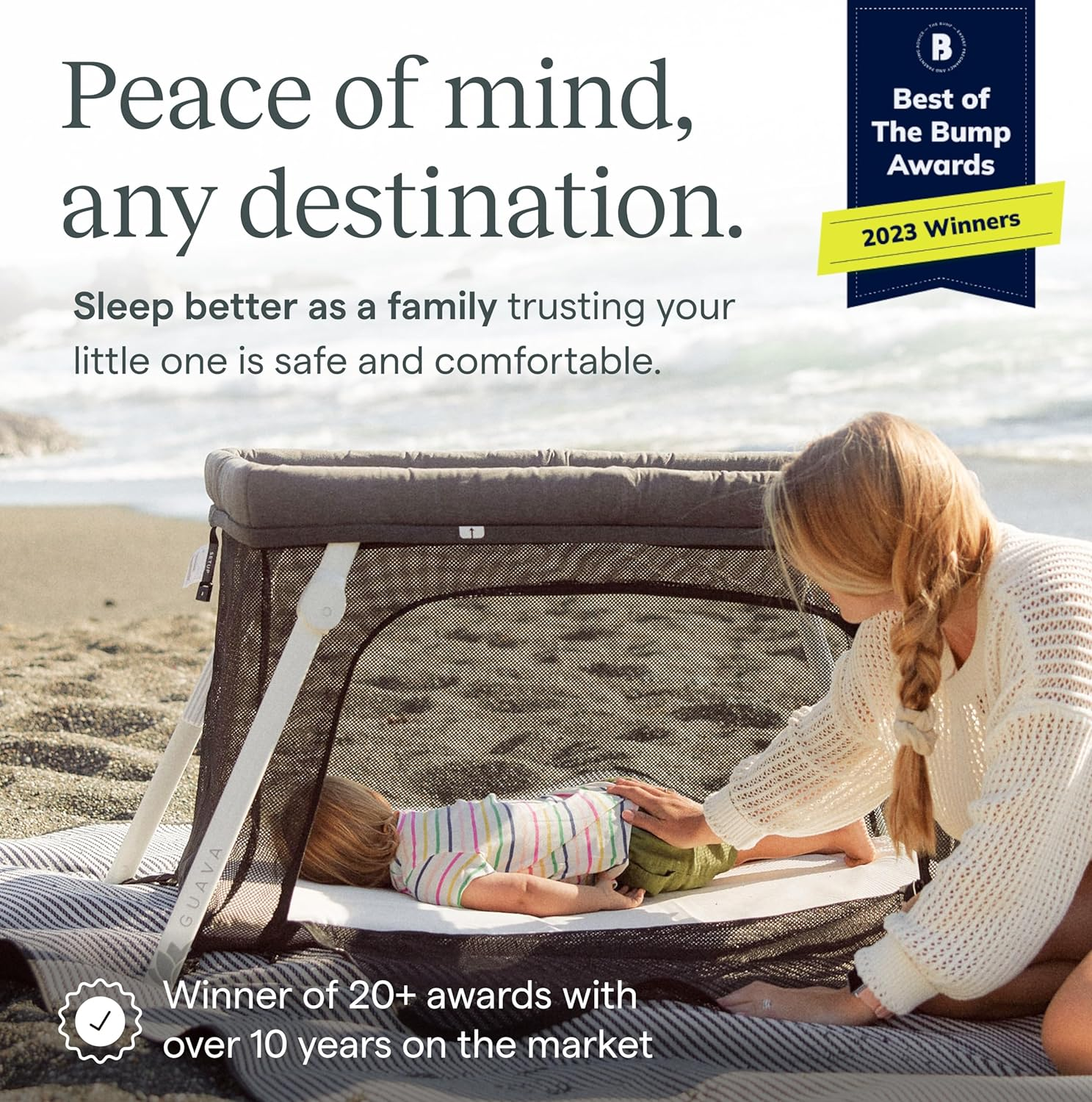 The Guava Lotus Crib is made with high-quality aluminum and non-slip rubberized feet, making it travel-ready and easy to assemble. It is perfect for parents on-the-go who need a reliable and convenient portable travel crib. The crib features a full-height ClearView mesh design, providing better visibility and airflow. The package includes a portable crib mattress and a compact, airport-friendly backpack carrying case. The removable and washable fabric and mesh cover make cleaning and maintenance a breeze. The Lotus Crib comes with a two-year warranty and excellent customer service. Please note that sheets are not included but are available for purchase on Amazon.