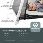 The Guava Lotus Lightweight Travel Crib is a baby-safe and portable play yard that comes with a comfy mattress. This play yard has been certified safe and low-VOC, making it a reliable choice for your little one. It has been tested and certified GreenGuard Gold, ensuring that it does not contain any harsh chemicals such as PVC, lead, formaldehyde, mercury, arsenic, or phthalates. With the Lotus, you can create a safe and comfortable environment for your baby, whether they are resting or playing.
