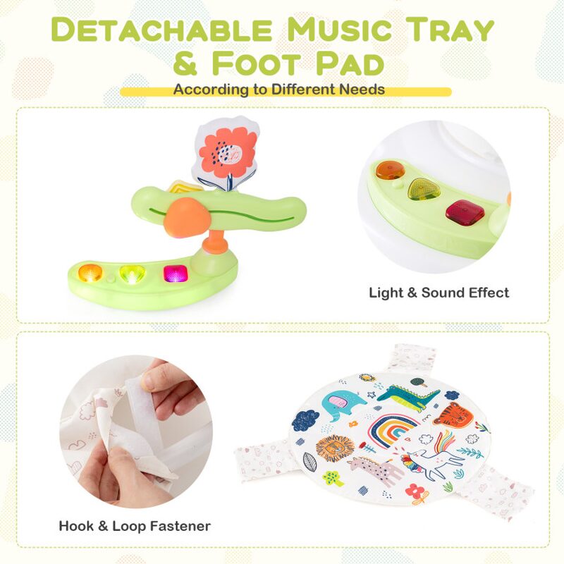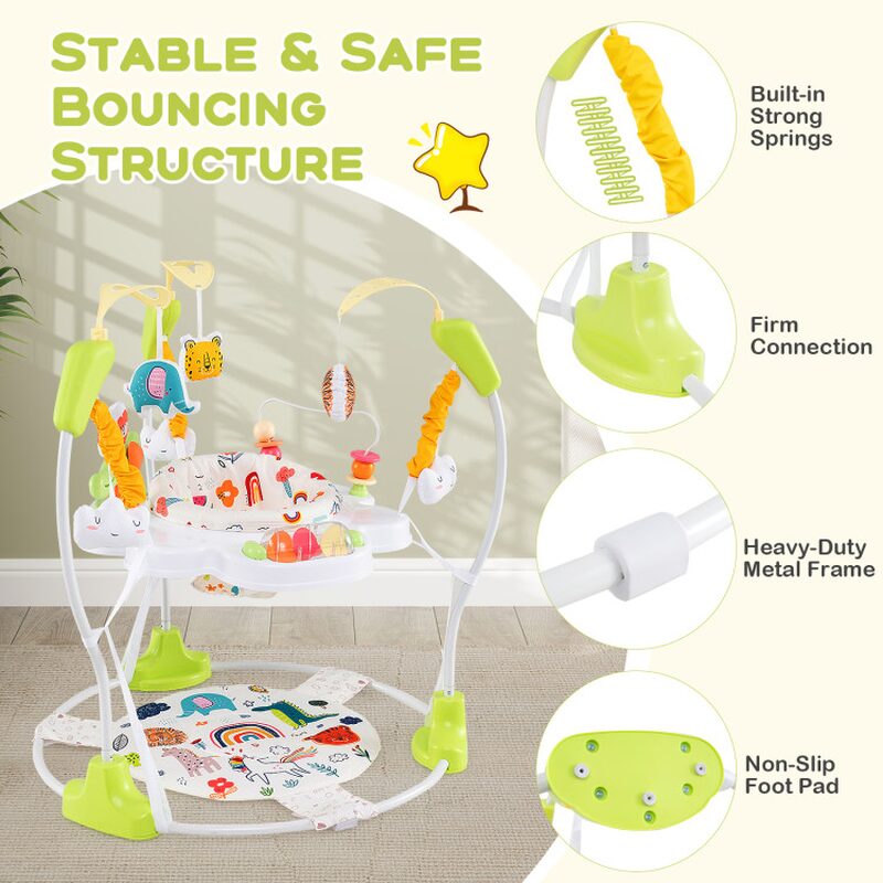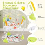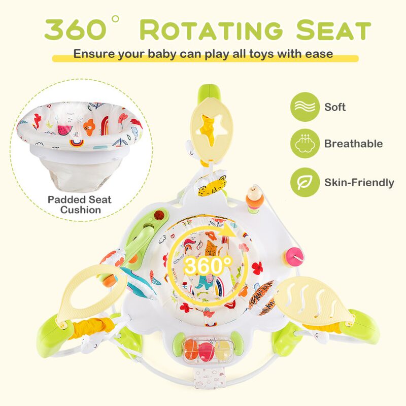 This activity center is equipped with ten interactive toys, including a music box with lights and sound effects, ensuring endless entertainment. The stable and secure design, supported by a heavy-duty metal frame and non-slip foot pads, guarantees a safe bouncing experience for your child. Additionally, the padded seat cushion is removable and machine washable, making cleanup a breeze. This thoughtful design not only fosters your baby’s development but also provides peace of mind for parents.