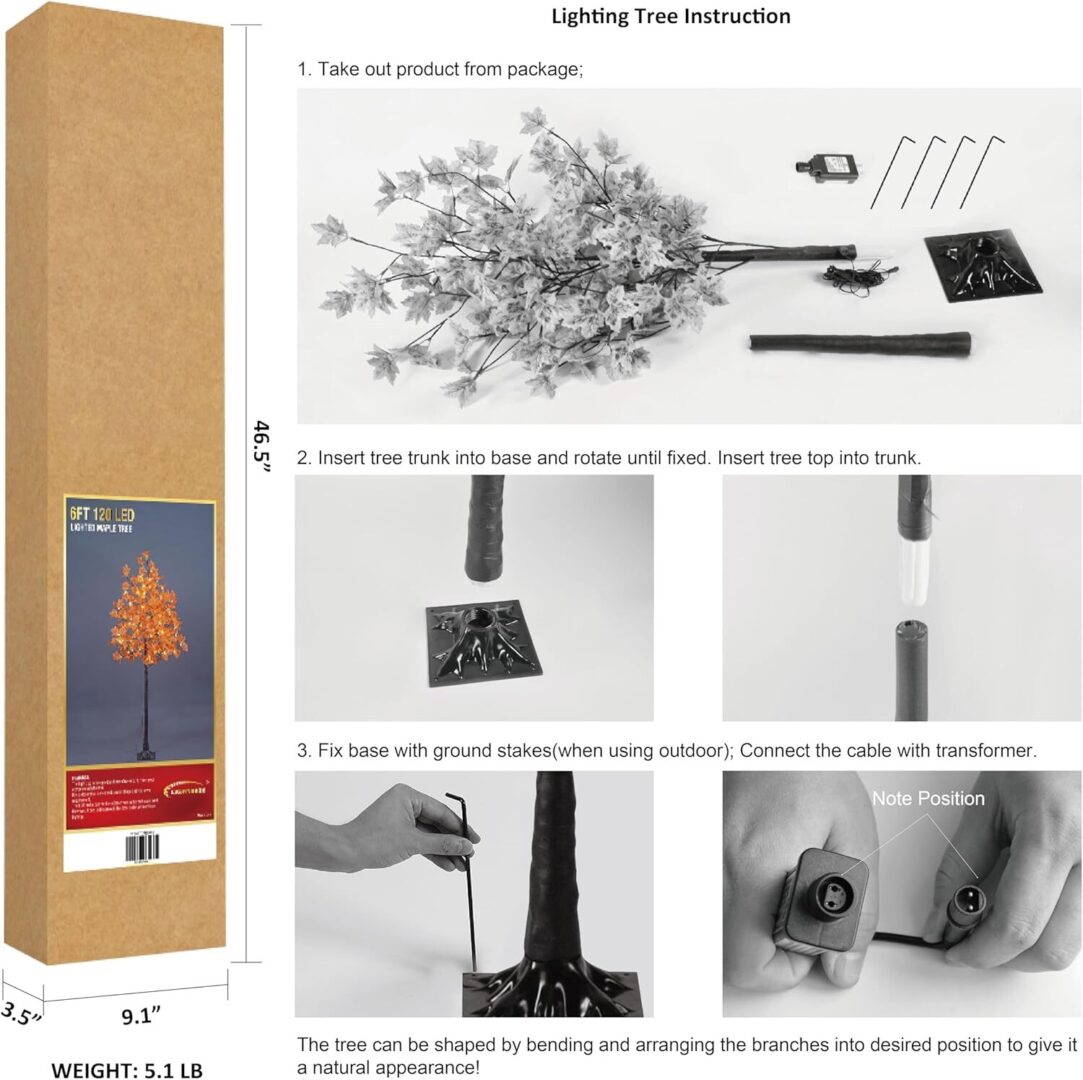 • The tree stands at an impressive 6 feet tall and is equipped with a reliable plug-in power supply, making it easy to set up and enjoy. Its unique Consolidus Base provides exceptional stability compared to traditional cross stands, ensuring that your maple tree remains upright and secure. Ideal for both indoor and outdoor settings, it comes with linen or gunny bags for added convenience, and can be easily disassembled for storage when not in use.