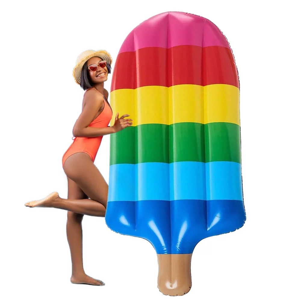 • 💗 Rainbow Popsicle Pool Float:Suit yourself with our Popsicle Inflatable Mat. This has a fun popsicle design that is pleasant to the eyes even in a hot summer pool fun activity.The rainbow popsicle pool float for pool parties, spring break, or summer fun at the beach. Our customers agree that this is the best inflatable popsicle you can get!