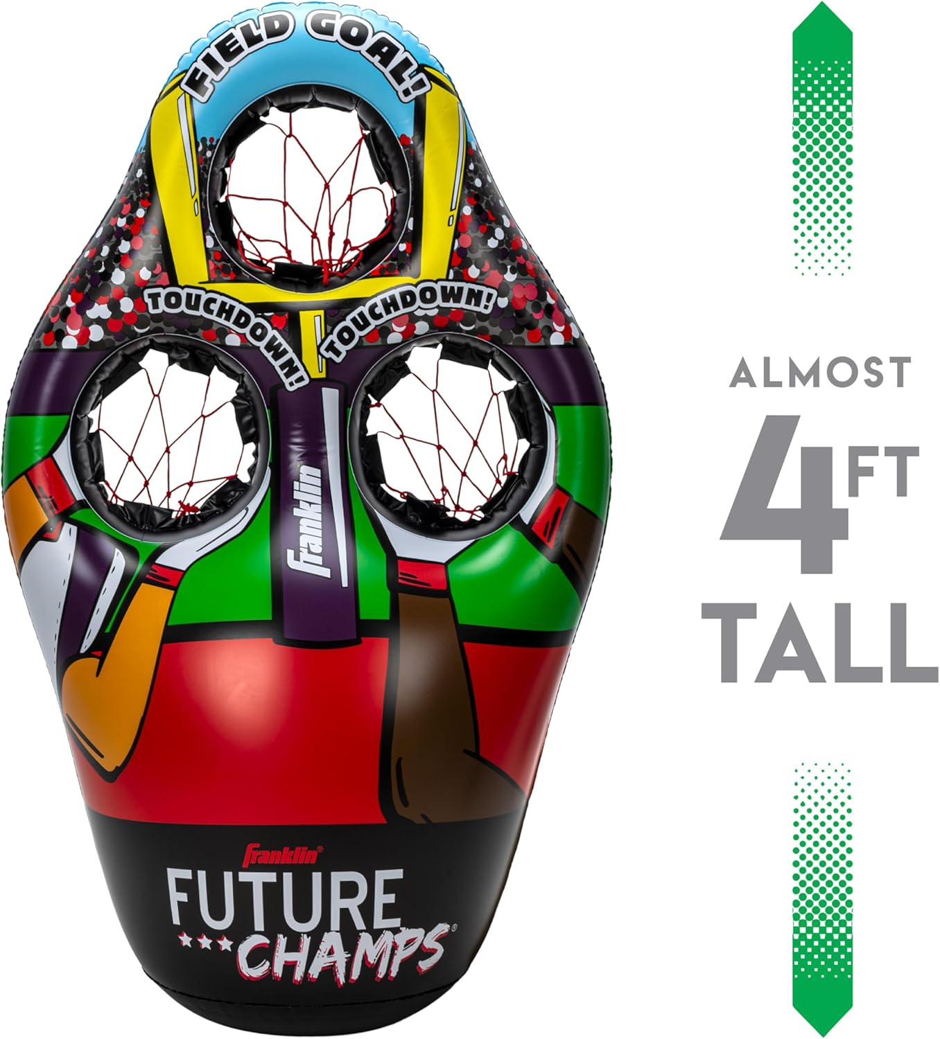 • FOOTBALL ON THE GO: The inflatable 3-hole football target is designed for easy storage and portability, making it an ideal companion for on-the-go fun!