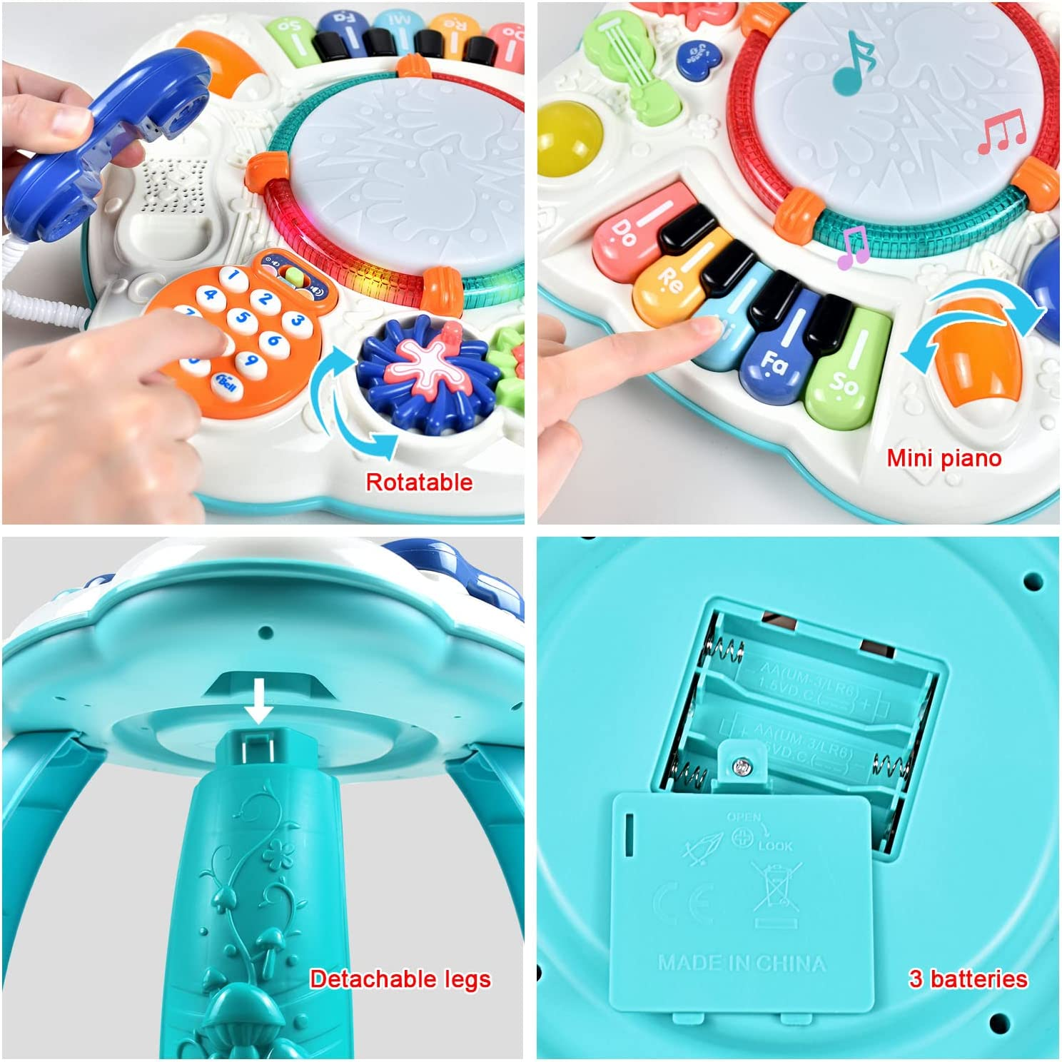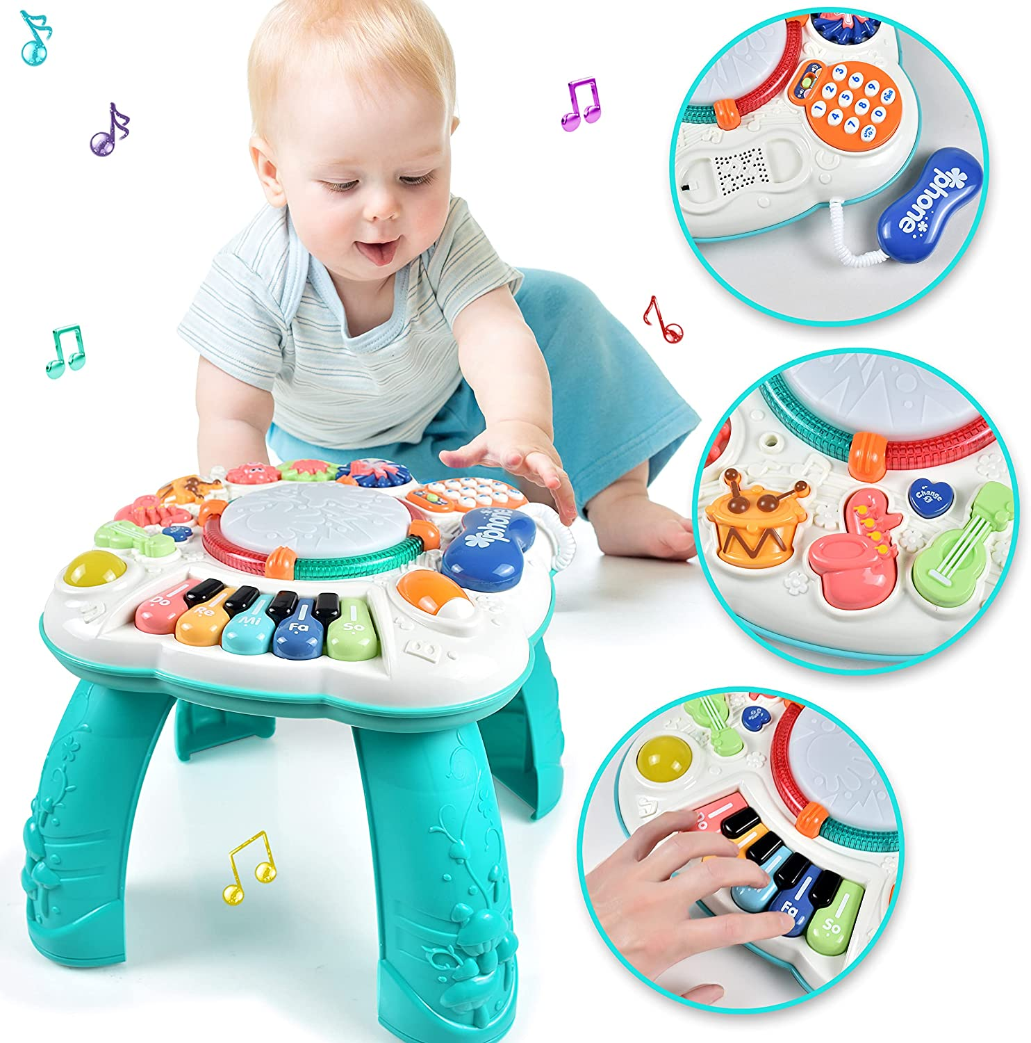 • 【Early Educational Activity Center 】: Size: 11.8 x 11.8 x 12.2 inches, the learn musical table is made of safe, non-toxic, sturdy ABS plastic. Perfect for baby shower gift, Baby birthday gift, Christmas gift.
