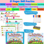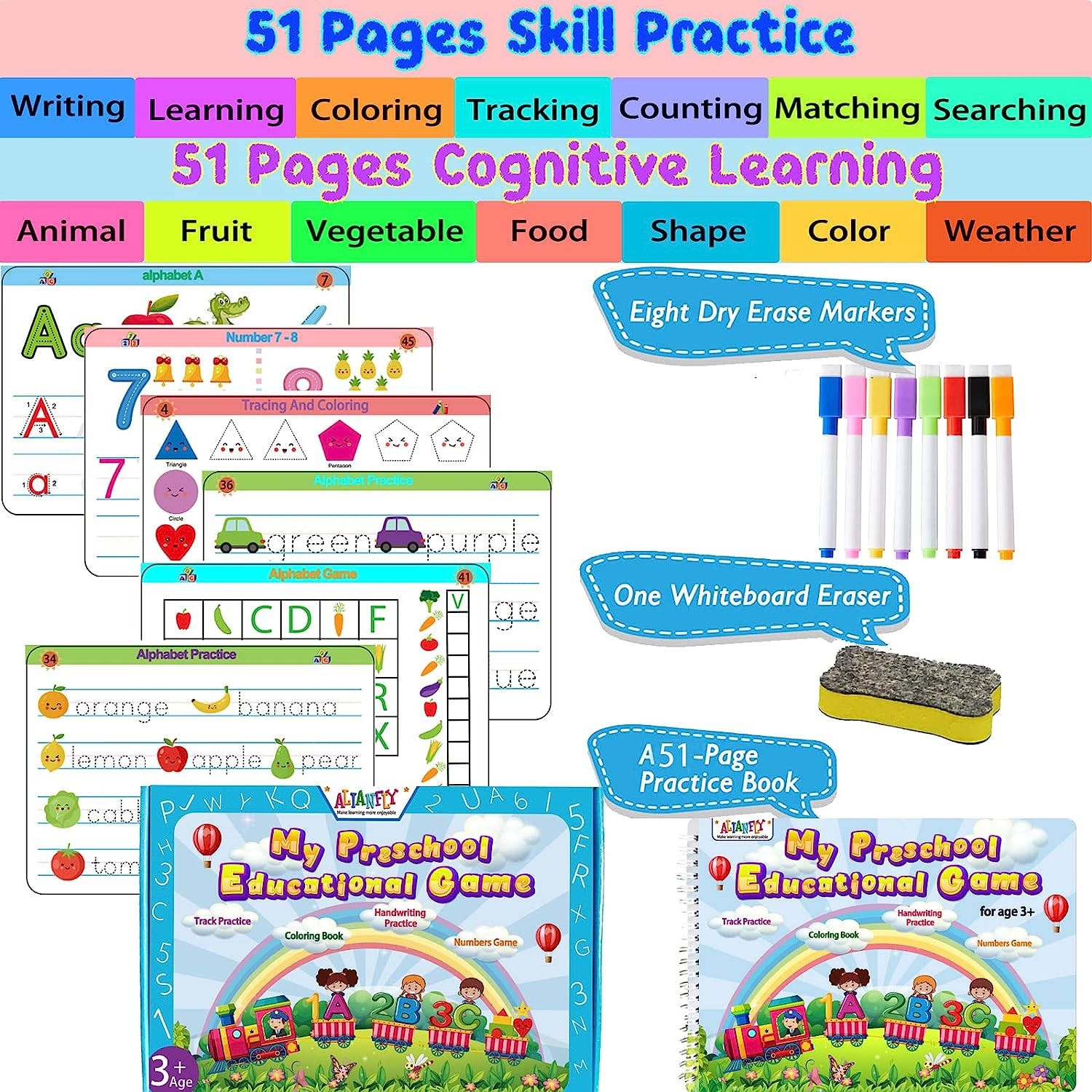 This preschool learning workbook comes with a gift box and includes 51 pages of engaging learning activities, 8 markers, and 1 eraser. It is a multi-functional tool that allows kids to develop fine motor skills, communication, verbal and problem-solving skills, and improve basic hand-eye coordination, imagination, and visual perception. Whether used as a busy book or a quiet book, this interactive workbook offers a fun and easy way for toddlers to learn and grow.