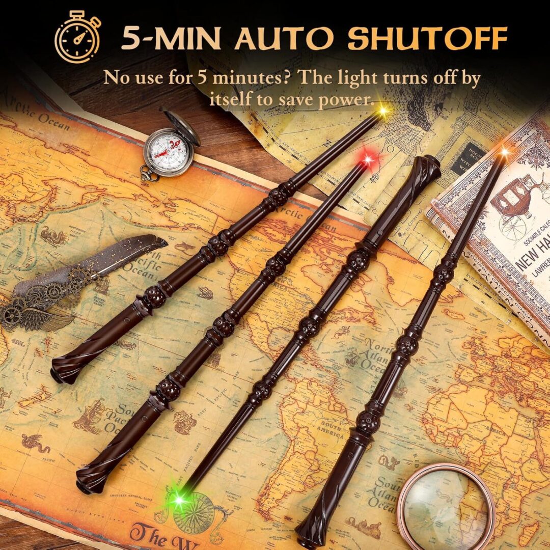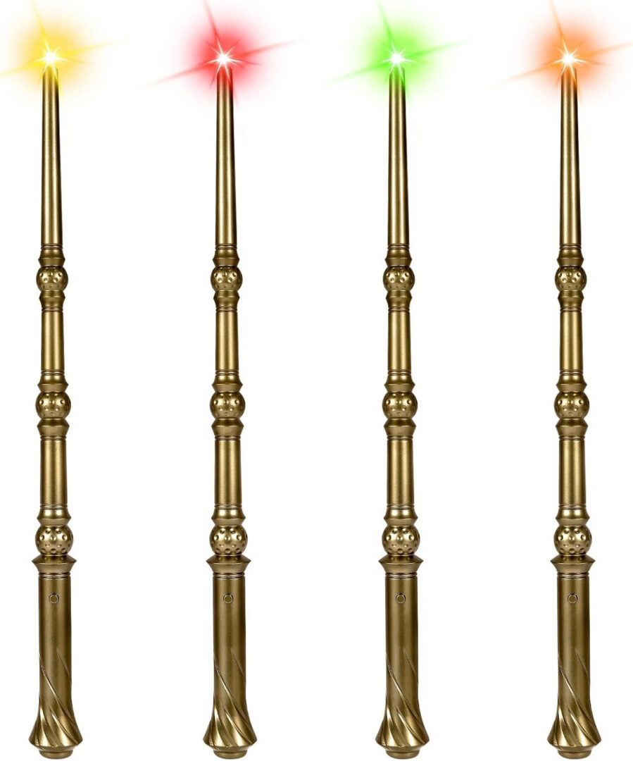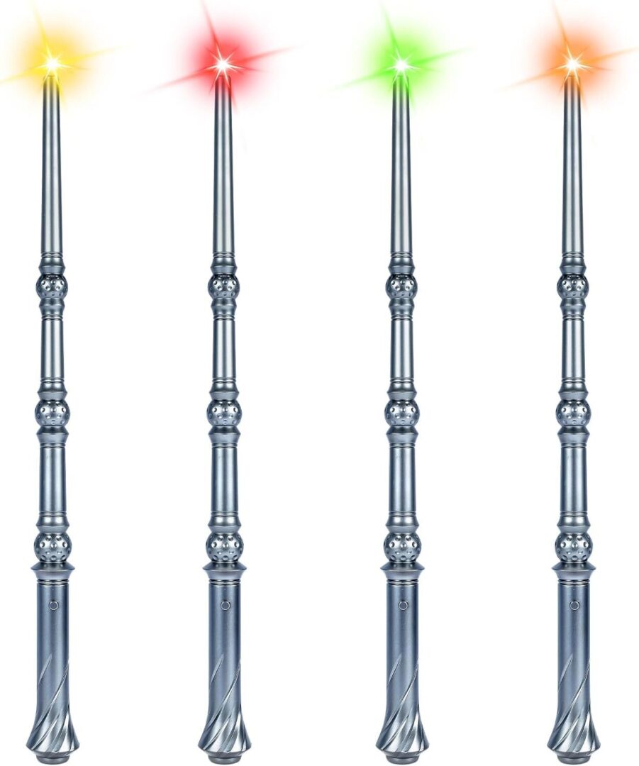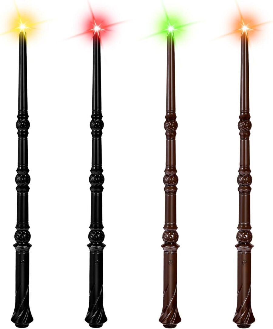 Light-Up Magic Wands with Sounds & Colorful Lights – Set of 4 Illuminating Wizard & Witch Toys for Kids – Perfect for Cosplay and Birthday Party Favors