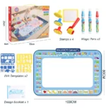 🔵 Magic Water Drawing Doodle Mat【Reusable 】——This innovative drawing mat is designed for endless creativity and fun. Measuring 100x80cm, it provides ample space for children to express their artistic talents. Simply fill the included magic pens with clear water and let your child draw on the Aqua Drawing Mat. The artwork will magically fade away in just 3-10 minutes, allowing for repeated use and encouraging children to experiment with their creativity without the worry of mess or waste.