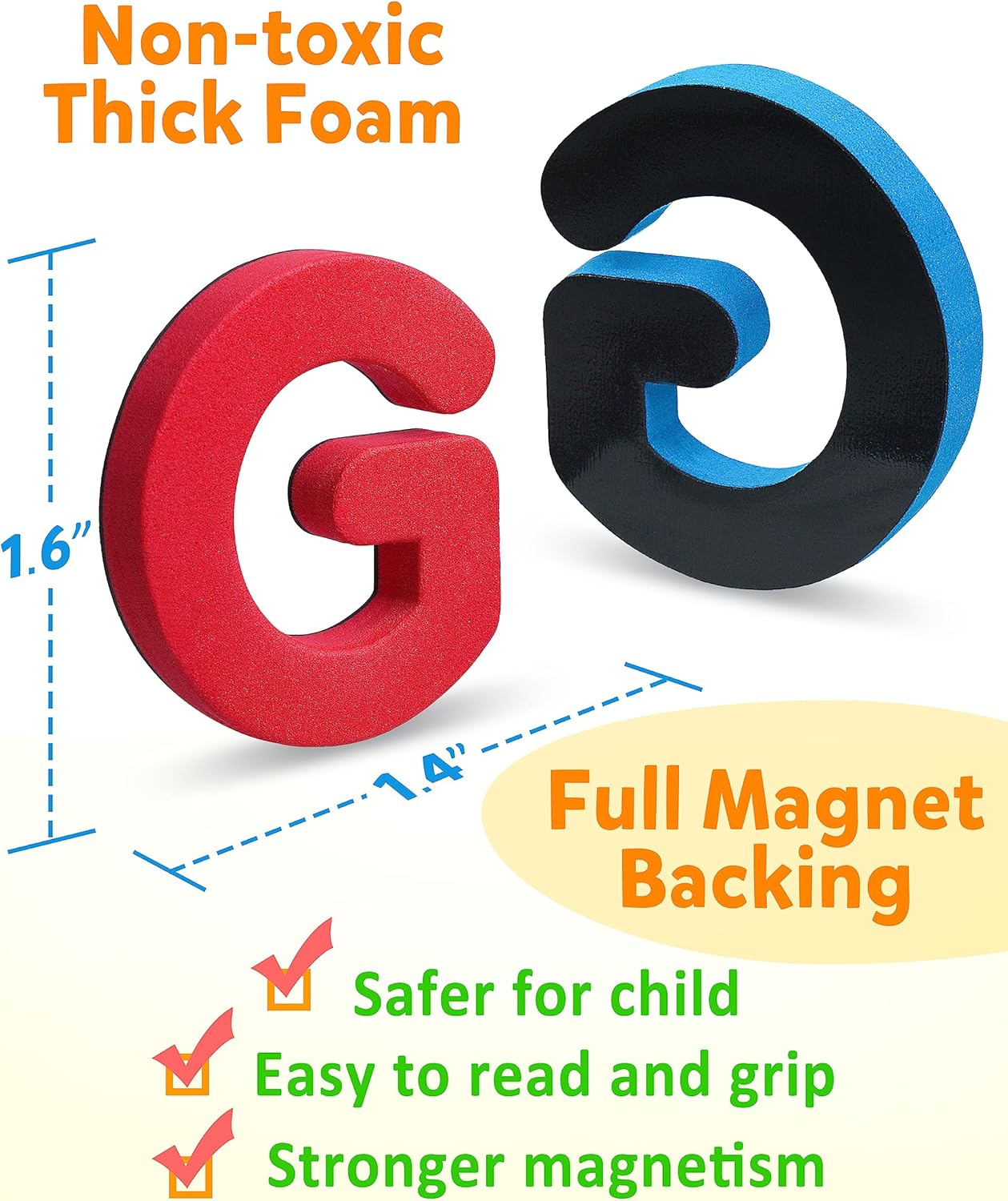 - Safety and Environmental Material: Our magnetic alphabets are made of premium foam for soft and durable pieces which uses very standard, clear, sans serif letters and are made without bad smells.