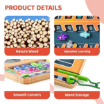 The Montessori Magnetic Alphabet Letter Maze is an educational wooden puzzle activity board designed to engage toddlers in interactive learning. This toy features a colorful design and magnetic letters, providing children with hours of educational playtime. The maze design challenges children’s problem-solving skills and spatial awareness as they navigate the magnetic letters through various paths and obstacles. It is a safe and durable toy made of high-quality materials, ensuring that the magnetic letters are securely attached to the surface and won’t get lost easily. This toy is built to withstand rough play and is durable enough to last for a long time, providing endless hours of learning and entertainment.