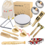 “Delightful Natural Wooden Musical Instruments Set for Kids – Perfect for Preschool Learning & Fun! Includes Maracas, Guitar, Xylophone, Tambourine, Castanet, Shaker Egg, and Flute!”