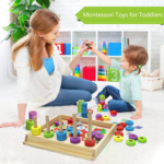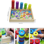 One of the main features of this toy is its ability to teach number counting. Children can stack the colored circles on the wooden sticks and match the numbers to learn basic math concepts. Additionally, they can practice counting by placing different math wooden chips in the appropriate spots. This hands-on approach to learning numbers makes it engaging and fun for preschoolers.