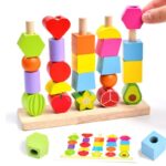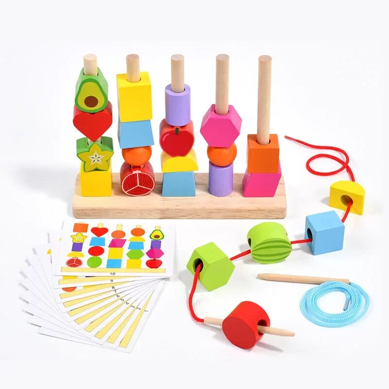 Montessori Wooden Stacking Blocks Puzzle Game – Colorful Beaded Fruit Shape Matching Educational Toy for Children