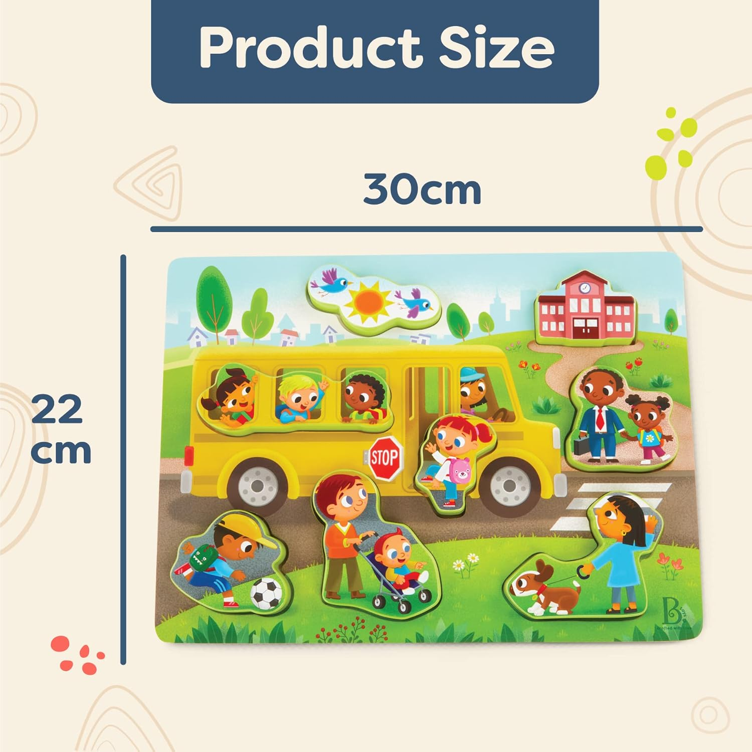 • CHUNKY PUZZLE: Hop on the bus and get into the school spirit with a chunky ‘n’ colorful puzzle!