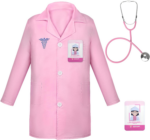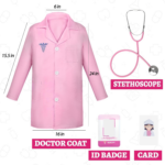 The Phobby Pink Doctor Kit for Girls is designed for toddlers aged 3-5 years old. It includes a professional-looking white lab coat, a realistic kids stethoscope, a doctor ID badge, and a card. This doctor toy fosters imaginative play and boosts confidence.