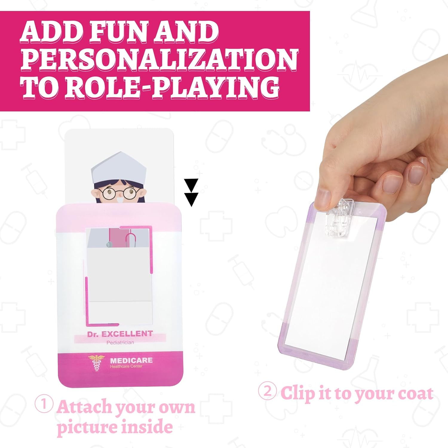 When toddlers put their own pictures on their ID badges and clip them to their doctor’s coat, they feel a sense of responsibility to become little doctors.